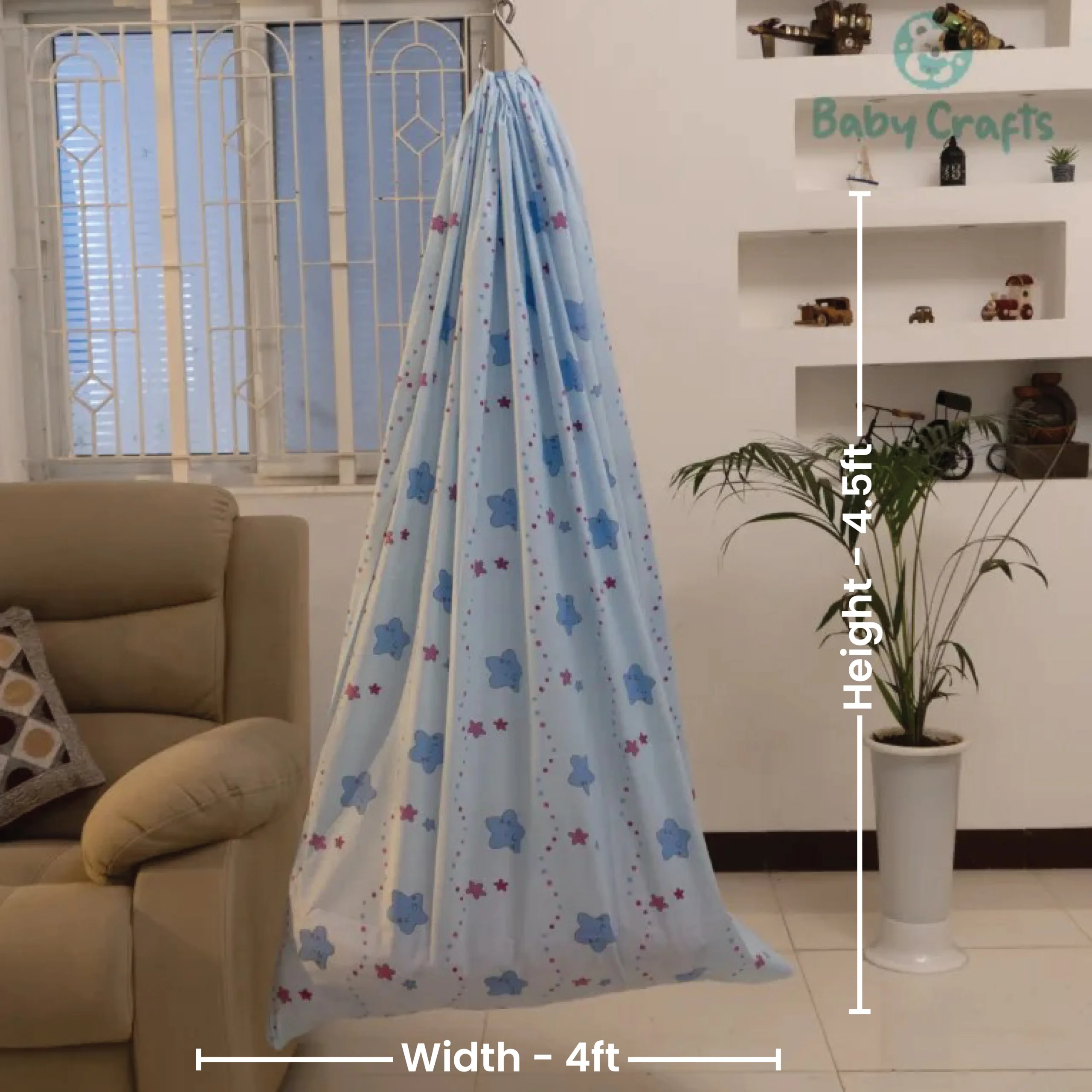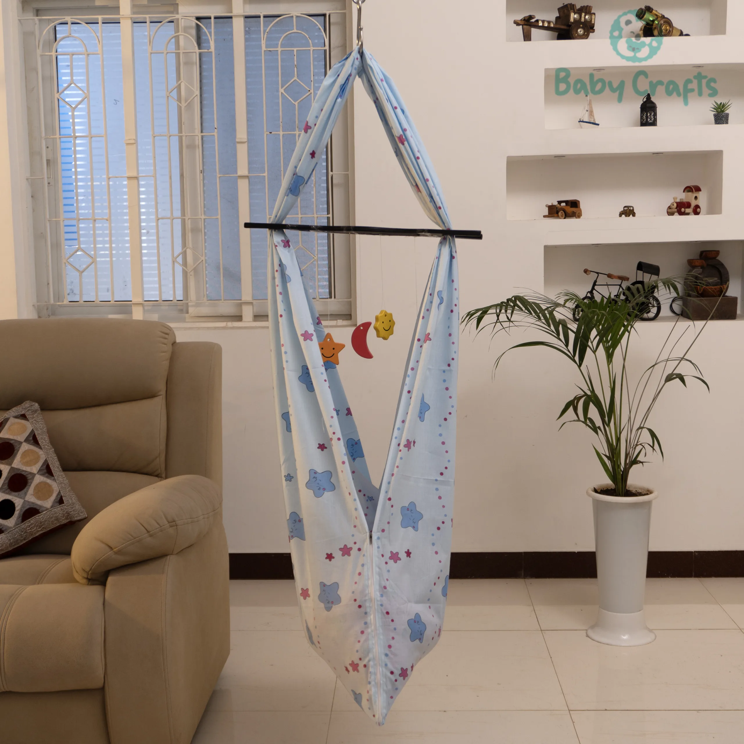 Lovingly crafted for comfort and safety, our Cotton Baby Cradle features breathable cotton fabric and a secure zip closure to keep your baby snug and safe. Gentle sway, cozy design – perfect for sweet dreams.