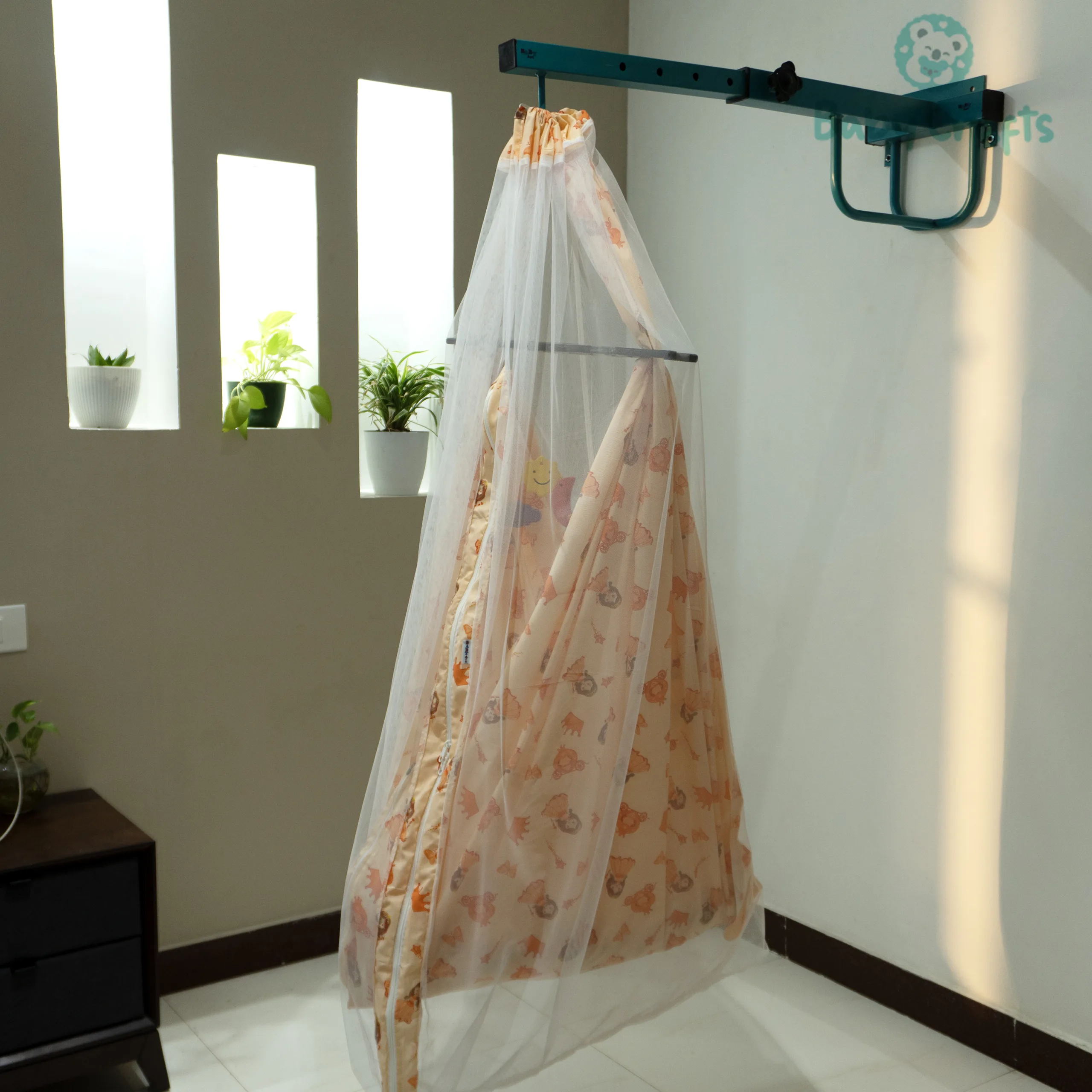 Lovingly crafted for comfort and safety, our Cotton Baby Cradle features breathable cotton fabric and a secure zip closure to keep your baby snug and safe. Gentle sway, cozy design – perfect for sweet dreams.